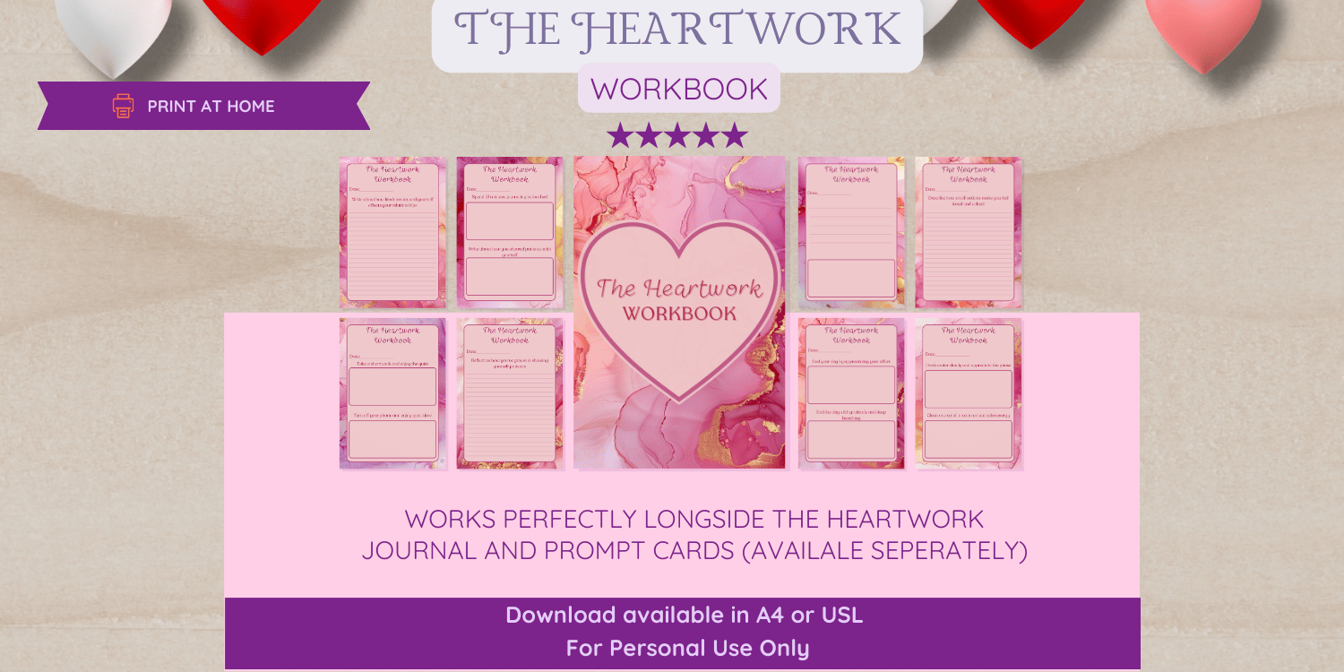 The Heartwork Collection brings together three beautifully designed self-care tools to help you pause, reflect, and nurture yourself every day. With a combination of journaling, daily prompts, and uplifting reminders, this bundle makes it easy to create moments of calm and kindness in your routine.